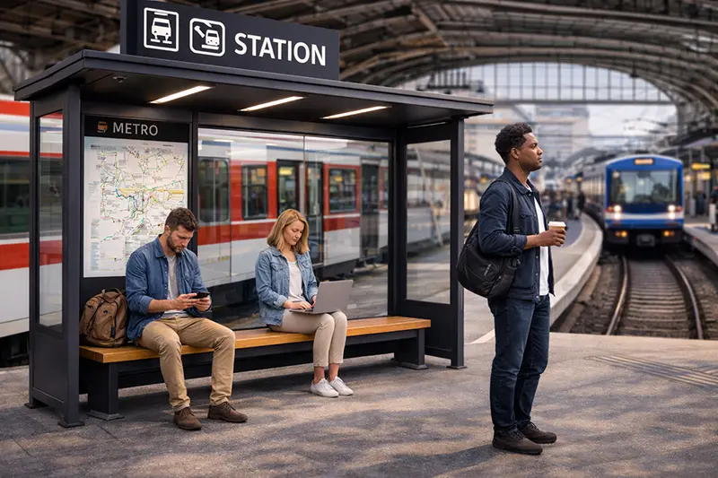 Наши остановочные павильоны — это идеальное сочетание качества и современного дизайна. Мы используем только высококачественные материалы, что гарантирует долговечность и надежность в любых погодных условиях. Эти павильоны спроектированы так, чтобы обеспечить максимальный комфорт и безопасность пассажиров, независимо от времени года.