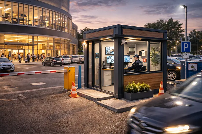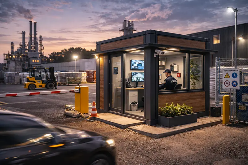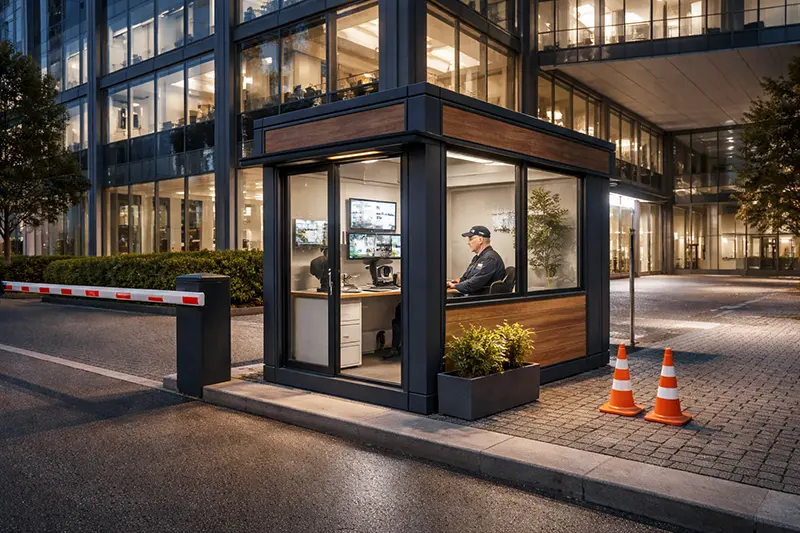 Посты охраны — это специально разработанные модульные здания, предназначенные для размещения охранников, вахтеров и сотрудников службы безопасности. Они могут быть установлены в любом месте, где необходимо обеспечить безопасность объектов, таких как офисные здания, торговые центры, строительные площадки и промышленные зоны. Посты охраны предлагают комфортные условия для работы и оснащены всем необходимым для круглосуточного дежурства: освещением, отоплением, кондиционированием и системой связи.
